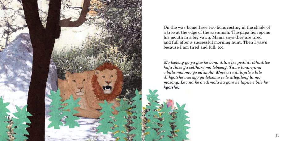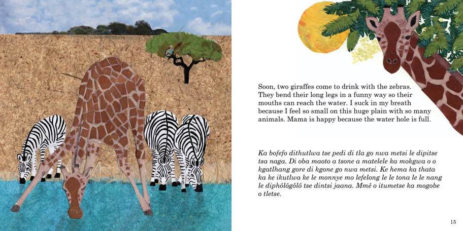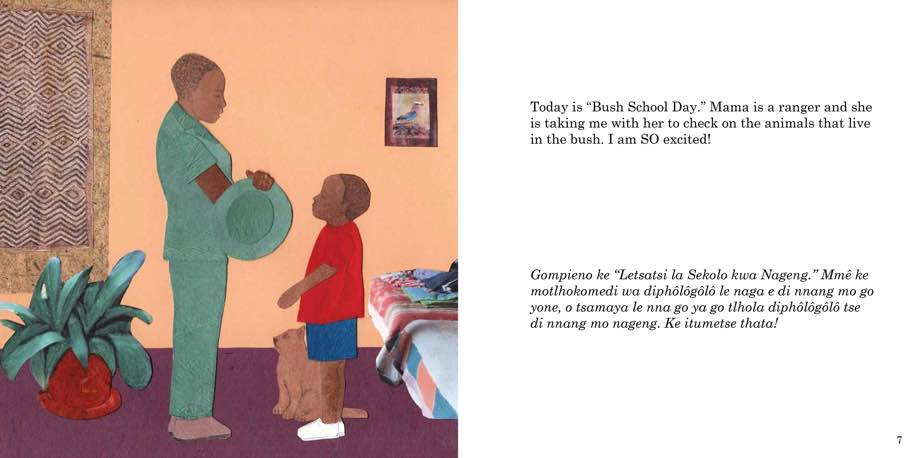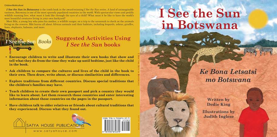 In I See the Sun in Botswana, the newest installment of the I See the Sun series, readers are introduced to Bibi, a young boy who joins his mother, a wildlife ranger, on a trip to the savannah to check on the animals living on the reserve. Bibi learns all about African animals and their habitats, including leopards, zebras, giraffes, lions, elephants, baboons, and more.